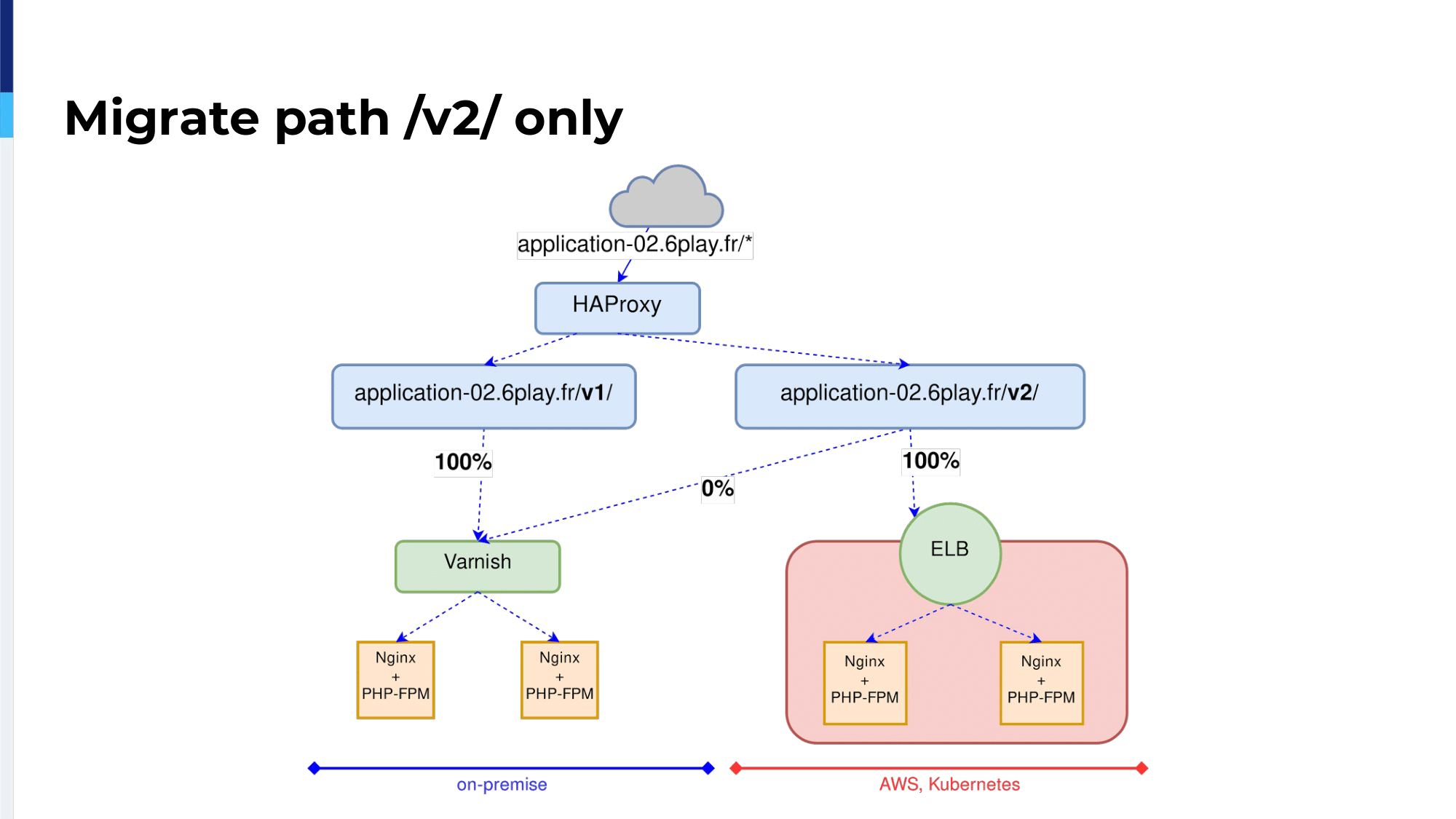 We took our time to build the cloud application, to deploy a Kubernetes cluster inside that application. Then the application was available through an ELB, an Elastic Load Balancer. So, the same application was available through our Varnish servers or through the ELB and we had to migrate it.
